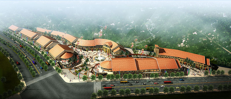 引进和借鉴国内外先进的商业区步行街设计理念,结合灵山当地传统岭南建筑风格,建成适合灵山当地的全新商业建筑结构模式,采用最现代的建筑造型,丰富的立面色彩,科学的结构布局,使它成为集风情旅游、餐饮购物、休闲娱乐于一体的商业步行街,是广西首个荣获国家建设部颁发《中国优秀投资环境商业楼盘》的项目。