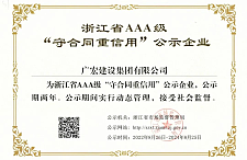 日前,浙江省市场监督管理局公示了2022年浙江省AAA级“守合同重信用”企业名单,广宏建设凭借着诚信守法的“契约精神”、多年来良好的社会信誉和优质的管理服务,顺...