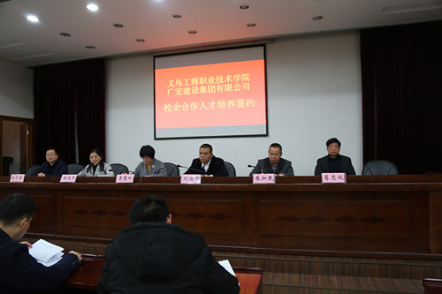 2018年1月15日,广宏建设集团有限公司与义乌工商职业技术学院校企合作人才培养签约协议在义乌工商职业技术学院举行。商学院建筑工程学院4个班约150名学生参加了签约仪式。