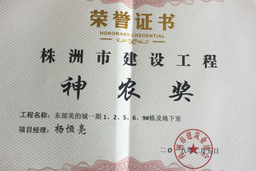 3月10日,从湖南株洲建筑业协会传来消息,广二建喜获两项“神农杯”,项目经理杨恒亮、吴茂忠获“神农奖证书”。