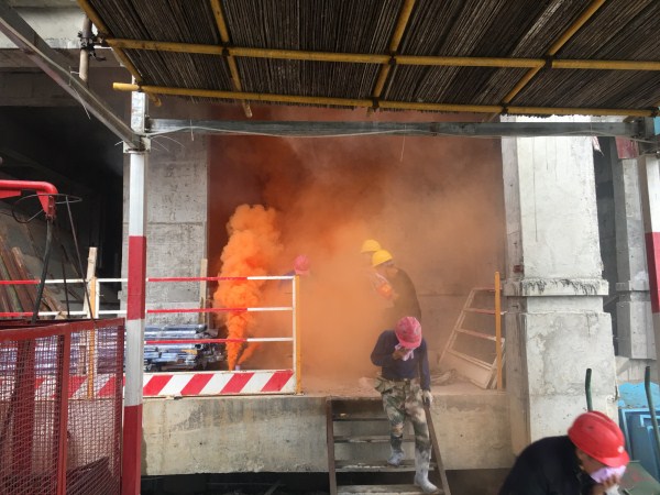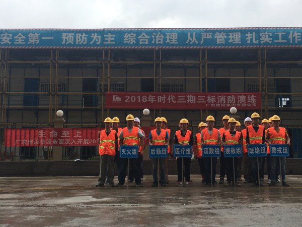 随后,举行了消防应急演练。随着项目现场总指挥对讲机上传来安全主管金正阳“现场某处由于电焊施工不当造成局部起火”的声音,总指挥一声令下,各应急小组人员马上启动应急预案,分头有序展开救援活动。救援小组分成疏散组、灭火组、搜救组、警戒组、联络组、医疗组、后勤组。联络组立即拨打119火警,警戒组迅速组织人员对起火区域进行隔离,疏散组对还在现场人员进行疏散,同时项目部义务消防队(灭火组)快速奔赴到起火现场使用干粉灭火器进行灭火,由于当天下着下雨,火势很快得到控制,遂联络组及时联系了119说明了现场情况不需前来救援。搜救组进入火灾现场进行搜救时发现一名脚部受伤工人无法站立,及时联系了后勤组使用担架把受伤工人及时抬出火场,医疗组对受伤工人及时进行了绑扎救治。随着火势彻底扑灭,人员全部安全撤离,总指挥下达应急演练结束。在演练中每位员工都严格按照应急预案要求,做到临危不乱、紧张有序,保证了演习的成功举行。