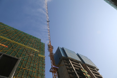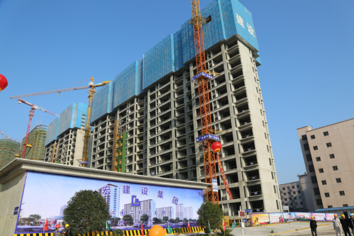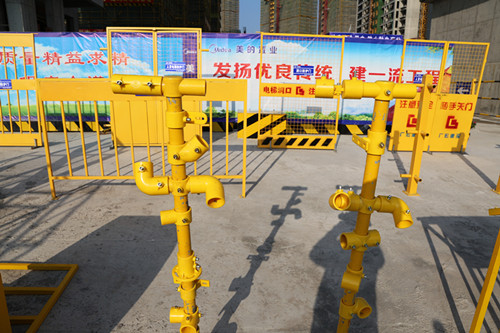 项目安装着自动喷淋系统,有效地解决建筑扬尘和噪音。