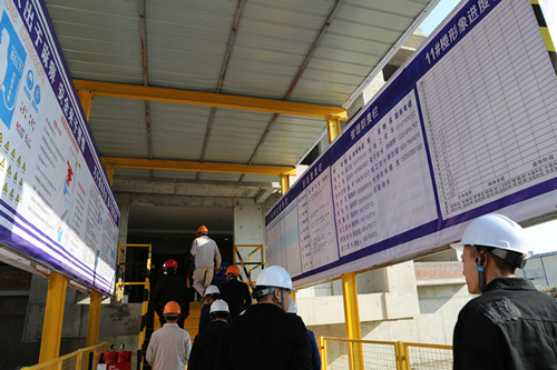 第一阶段,现场观摩美沁园铝模、爬架、全剪外墙、文明施工现场。