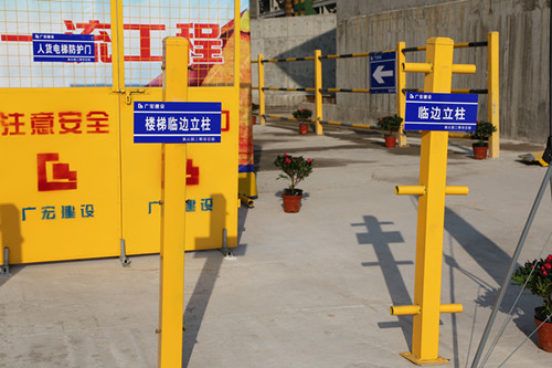 建筑楼层,设置临时厕所,在阶梯、墙体棱角处,安置成品保护设施。