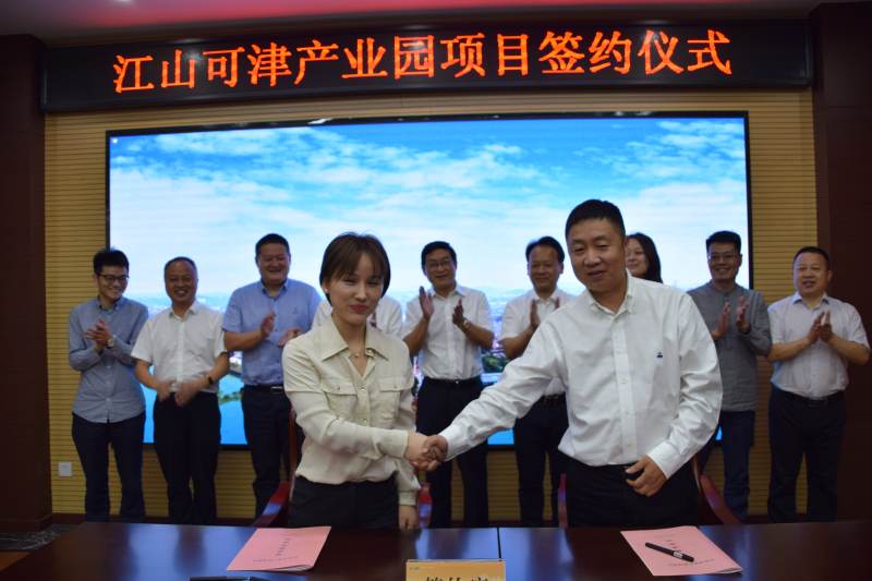 最后,贺村镇副镇长周吟莲女士与可津润山控股集团副总经理施新阳先生在热烈友好的气氛中,相互签订了《项目投资框架协议书》,双方以微笑和紧密握手的姿态,给江山可津产业园项目的签约画上了圆满的句号。