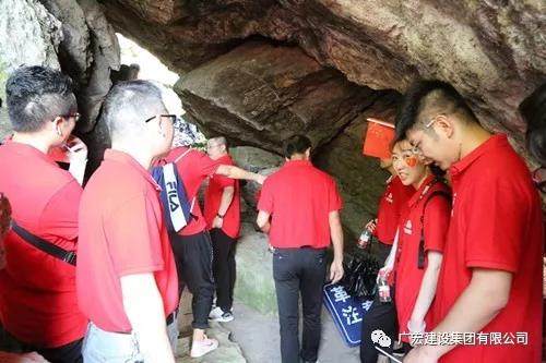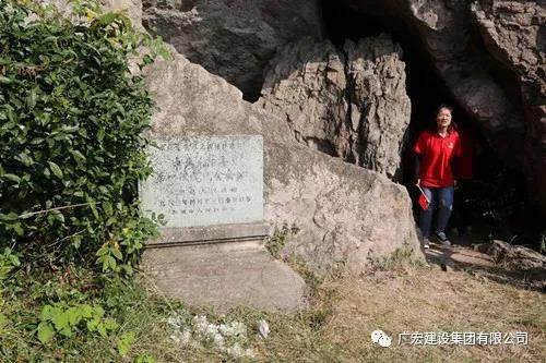 沿着凹凸不平的土石路爬上一大会址纪念亭,亭下“中共东阳县一大会址”的石碑立在山壁一侧。在此环顾四周,朦胧的远山,仿佛笼罩着一层轻纱,影影绰绰,在飘渺的云烟中忽远忽近,若即若离,就像是几笔淡墨,抹在蓝色的天边。再往上,转过几个弯,小石婆洞就出现面前。几块大小不一的岩石相互交叠,正好留下了一个小洞口。走进洞内,里面是一个十多平方米的小洞穴,可以容纳十多人。当年在这里举行中共东阳县第一次党代会,可谓非常隐蔽(小石婆洞上方还有一个大洞)。当年16名党代表,三三两两来到小石婆洞,召开了中共东阳县第一次代表大会。回顾了革命历史,缅怀了革命先烈,内心受到极大震撼,感悟到红色政权来之不易。