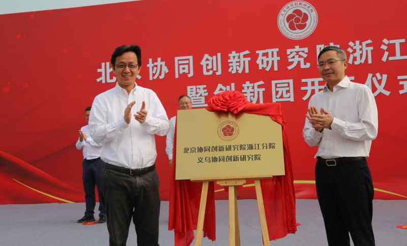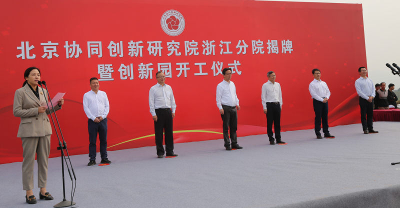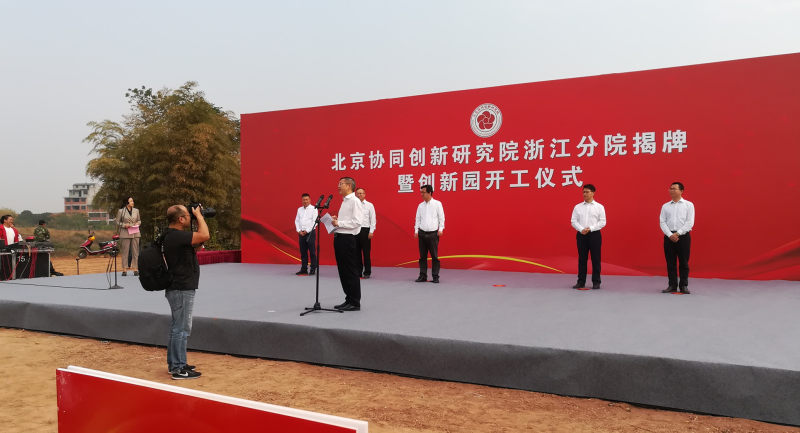 9点正,揭牌暨创新园开工仪式正式开始。出席今天仪式的主席台领导和嘉宾有:金华市委常委、义乌市委书记林毅,北京协同创新研究院院长王茤祥,义乌市双江湖新区管委会党工委书记黄旭光,北京协同创新研究院浙江分院院长李春安,义乌市佛堂镇党委书记吴贵伦,北京协同创新园董事长姚文生。