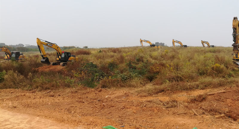 林毅书记宣布“义乌协同创新园项目开工!”后,只见6台挖掘机机声隆隆,开赴建设场地,伸开长臂开展作业,6辆渣土清运车穿梭往返,工地上呈现一派繁忙的景象。