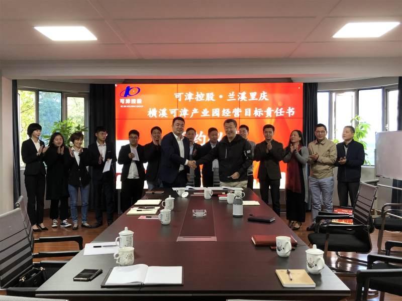 10月28日上午10时,可津控股集团三楼会议室举行了“可津控股·兰溪里庆”横溪可津产业园项目经营目标责任书签约仪式。