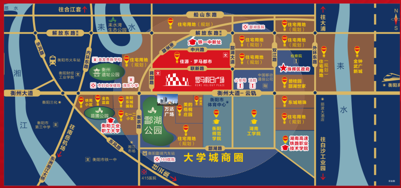 罗马假日广场所在的衡州大道是衡阳城市主干道之一,是武广新区核心,是衡阳东的门户区。衡州大道双向连接衡阳站、衡阳东站,交通便利。毗邻珠晖行政新中心、酃湖大学城商圈,有着庞大的学生和上班客流,拥有较高的地段升值潜力。罗马假日广场畅享着便捷的交通带来的客流红利,为入驻商家与投资者带来源源不断的消费客群。