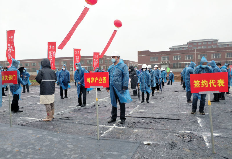 3月4日上午,尽管细雨湿冷,但可津家居产业园里彩旗招展,红色的气球,红色的悬幅宣传语,红色主色调背景的主席台,加之黄白色的主题点缀,整个开工奠基会场洋溢着融融暖意和热烈振奋的气氛。