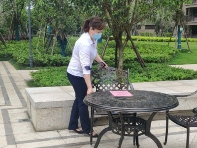 扫完地阿姨接着要整理公共桌椅