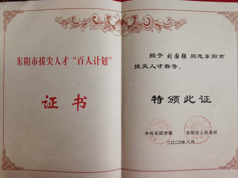 8月6日上午,东阳市拔尖人才增补人员座谈会在东阳市行政中心召开,表彰了一批新入选的东阳市拔尖人才。东阳市委常委、组织部长柳尊科出席会议,并为新入选人才颁发荣誉证书。可津控股旗下广宏建设总经理刘国强名列其中。