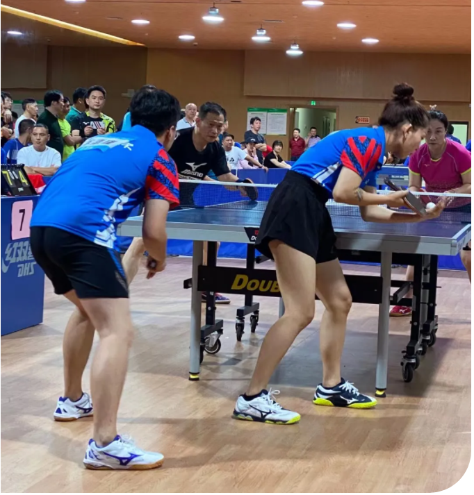 进入前八后,无论是专业还是本地业余的,每场较量都是精彩纷呈,很多场次都通过决胜局才分出雌雄高下,运动员们挥汗拼杀,激情四射,整个场馆呐喊声、加油声、欢呼声、喝彩声此起彼伏。东通电器一队与义乌卡卡队八进四的那场球,双方专业队员多回合的前冲弧圈攻防转换强强对抗以及一场本地业余对决都打成了拉锯战,都打满五局才分出胜负,最后义乌卡卡队在决胜局以13:11涉险挺进四强,可见其斗智斗勇奋力拼搏的激烈程度。