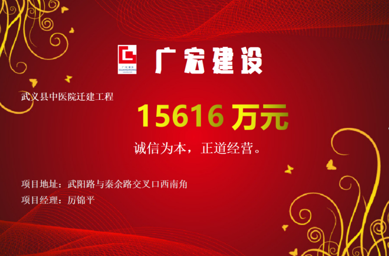 2021年6月25日,由武义县中医院实施的“武义县中医院迁建工程项目“,可津控股旗下广宏建设一举中标。该项目合同金额15616万元,总工期800日历天。