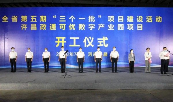7月5日,许昌政通可优数字产业园项目开工仪式隆重举行,市委书记史根治宣布项目开工令,市长刘涛致辞,副市长赵淑红主持开工仪式。市领导马正兰、王堃、刘保新、方婷、王志宏、李海峰,区领导李朝锋、何长成、何东亚、申健民、杜晓辉、孙卫东、程中山、刘红选、尹飞出席开工仪式。北京数字政通总裁王东,副总裁朱开印、数字政通许昌分公司总经理陶磊、可津润山控股集团总裁卢樑龙、总裁助理何可人、可津科技总经理王宇峰、副总经理施新阳及项目单位和施工单位,共100余人齐聚现场,为重大项目顺利开工齐声喝彩、共同庆祝。