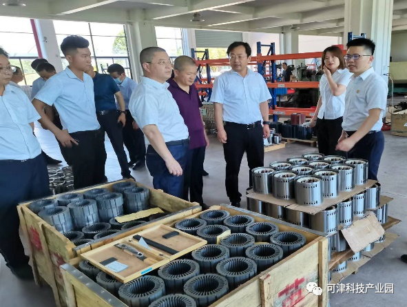 2022年7月8日,天津蓟州区委副书记、区长张建宇一行莅临可津控股考察,蓟州区委常委、副区长刘向锋、区政府办主任王学利、区合作交流办主任邵长亮、区金融工作局局长杨东升、区经济开发区党工委书记张利勇、蓟州新城公司董事长刘乃斌、区经开区管委会副主任李超杰、区经开区招商服务中心主任尹长东等陪同考察,现场参观了浙江嵊州可津机电产业园,走访了多个园区企业,并与可津润山控股集团董事长何飞龙、总裁卢樑龙、总裁助理何可人、可津科技总经理王宇峰等举行了座谈。
