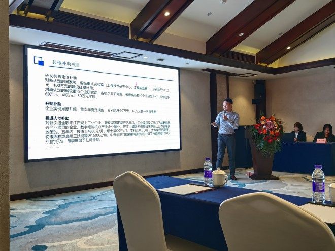 可津科技企服负责人谭武为大家作了衢州市惠企业政策嵌入式应用讲解。