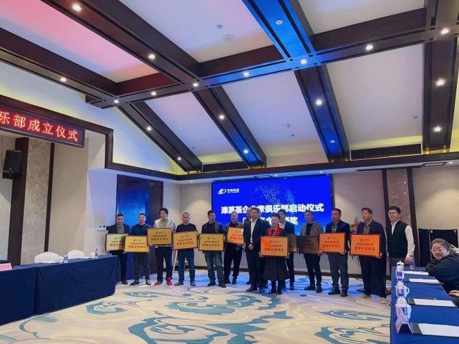 最后彭明明副镇长和王宇峰副总裁共同为俱乐部揭牌,为各企业颁发理事单位牌匾。