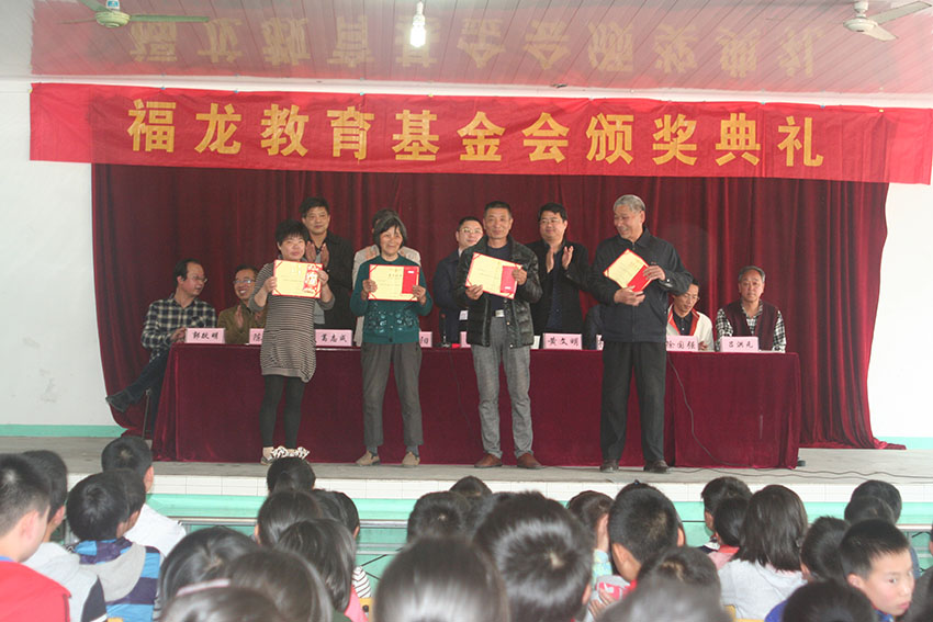 颁奖典礼上,何飞龙会长殷切地希望八达中小学的在读学生从小养成优良品德,认真学习,树立远大理想,走出大山,走向更广阔的世界,早日成材报答家乡,报答父母。他还表示:福龙教育基金会将继续一如既往的支持八达教育事业!